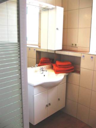 Wohnzimmer mit Eßplatz und Küche mit Geschirrspüler, 2 Schlafzimmer, Dusche/WC, Dachterrasse