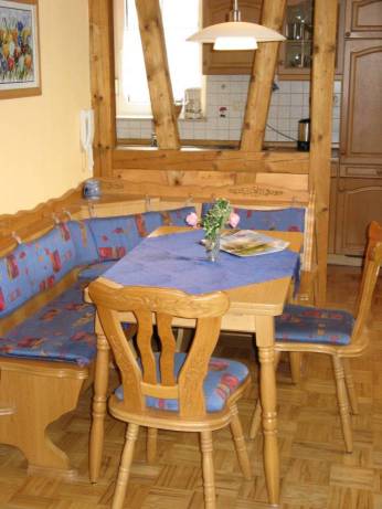 Wohnzimmer mit Eßplatz und Küche mit Geschirrspüler, 2 Schlafzimmer, Dusche/WC, Dachterrasse